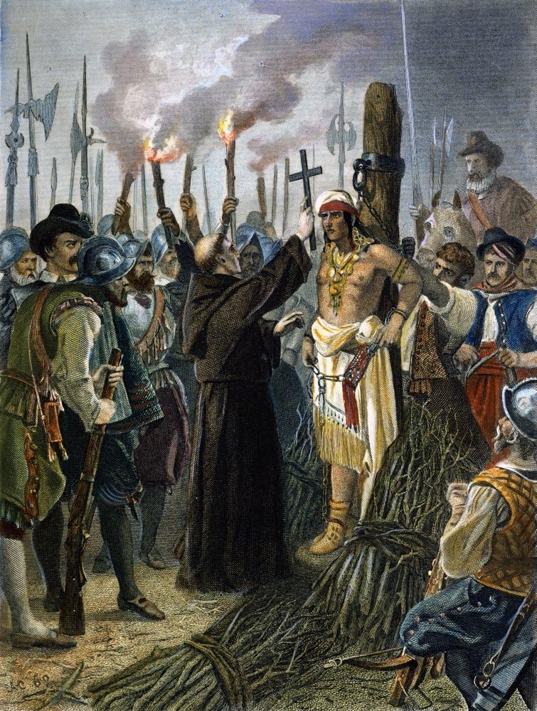 So Pizarro pivoted. First he set up a little settlement, San Miguel de Piura, and garrisoned it with 50 men. Then he collected some incoming reinforcements from Panama (but still no Almagro), bringing his soldier count up to 168. Then Pizarro raided a few towns, captured some locals to use as slaves, and tortured some others to learn about the Incan Empire and how to get to its capital of Cusco. After perceiving that one village chiefs was lying to him, Pizarro ordered a bunch of natives to be burned to death as a warning to the others.