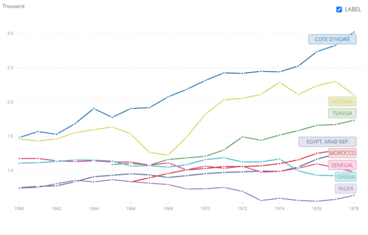 About 40 years ago, there actually was a clear example of a successful African country. Here is GDP per capita in constant 2015 USD from 1960-1978: